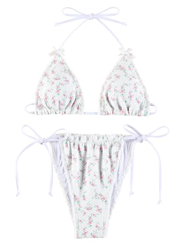 • Feature: Two piece bikinis for women. Adjustable halter string top and back, Removable padding, Side tie bikini bottom