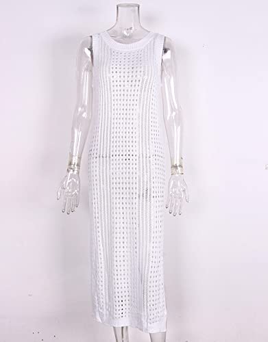 • This Women Summer Beach Cover Long Crochet Dress Features: Hollow Out Crochet Mesh Knit,Sleeveless,Crew Neck,Side Slit and Loose fit.