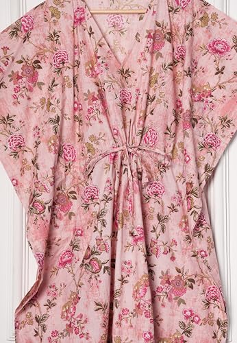 More information about INDACORIFY Women's Long Kaftan Floral Block Print Dress Cotton Beach Cover Up Summer Handmade Kaftan Night Wear Maxi Long Gown Multi