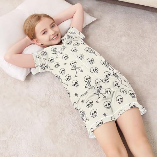 ALAZA Skeleton Sugar Skull Cartoon Style Satin Pajamas Set Short Sleeve Button Down Sleepwear Summer Pjs 2 Piece 6