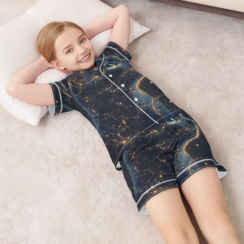 senya Pajama Sets Silky Button Down Nightwear Sleepwear Size 5-14 Years Cat Constellation 7