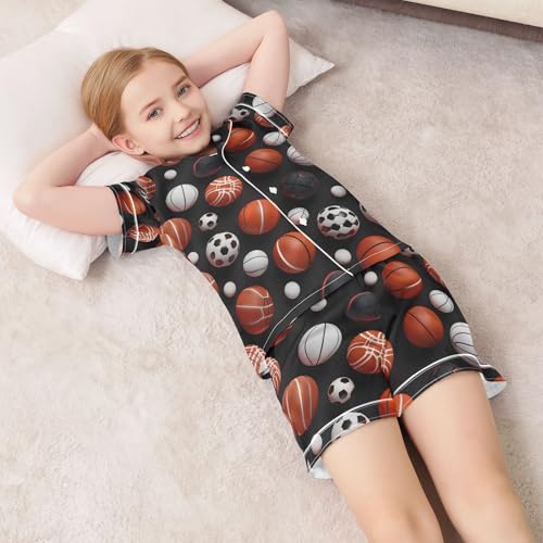 ALAZA Sport Soccer Basketball Black Pajamas Satin Pajama Set Short Sleeve Button Down Sleepwear 1