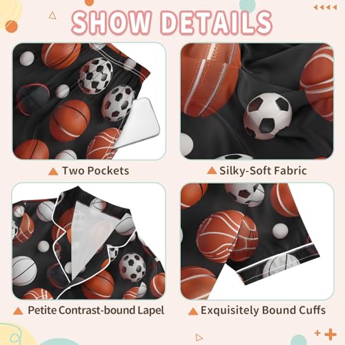 More information about ALAZA Sport Soccer Basketball Black Pajamas Satin Pajama Set Short Sleeve Button Down Sleepwear