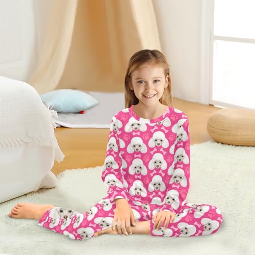 Poodle Pattern Pink Soft Pajama Set for All Seasons,Breathable Pjs Long Sleeve Sleepwear,Comfy Loungewear 2 Piece Underwear Set 5T 6