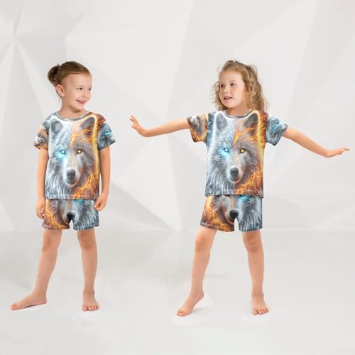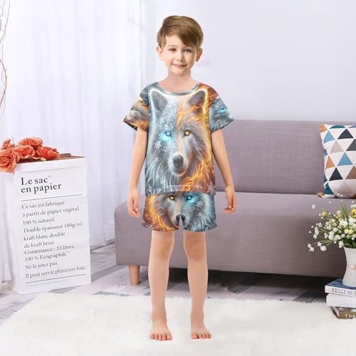Wolf Dark Blue Pajama Set Short Sleeve Pajamas Shorts Sets Cotton Soft Loungewear Sleepwear 5Y 4