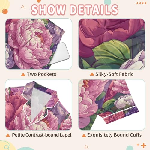 Satin Pajama Sets Short Sleeve Colors Floral Pattern Button Down Silky Nightwear 2 Piece PJS 5-14Y 6