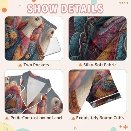 More information about Satin Pajama Sets Short Sleeve Colorful Feathers Turkeys Button Down Silky Nightwear 2 Piece PJS 5-14Y