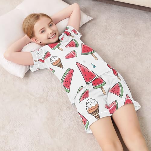 ALAZA Watermelon Ice Cream Pajamas Satin Pajama Set Short Sleeve Button Down Sleepwear 1