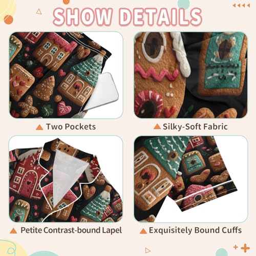 More information about Satin Pajama Sets Short Sleeve Gingerbread Houses Trees Button Down Silky Nightwear 2 Piece PJS 5-14Y