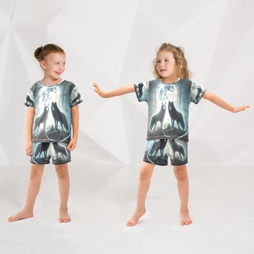 Wolves Moonlight Blue Pajama Set Short Sleeve Summer Pajamas Shorts Sets PJ Clothes Set Soft 5Y 4