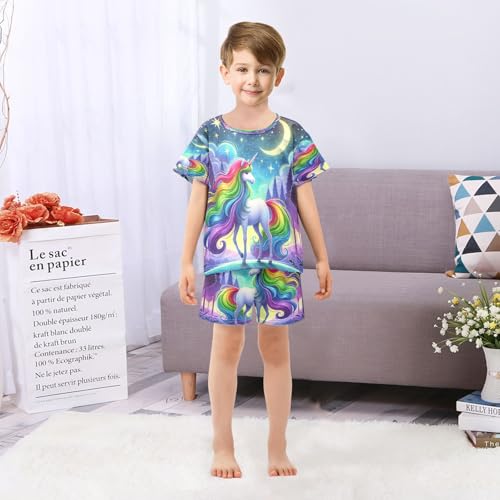 Unicorns Moonlit Night Pajama Set Short Sleeve Summer Pajamas Shorts Sets PJ Clothes Set Soft 5Y 4