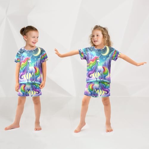 Unicorns Moonlit Night Pajama Set Short Sleeve Summer Pajamas Shorts Sets PJ Clothes Set Soft 5Y 5