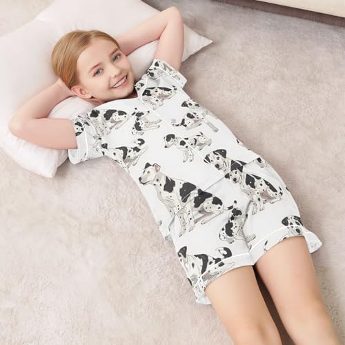 HOT ! ALAZA Spotted Puppy Dog White Pajamas Satin Pajama Set Short Sleeve Button Down Sleepwear