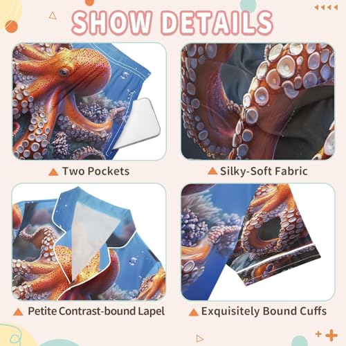 More information about ALAZA 3d Octopus Ocean Sea Satin Pajamas Set Short Sleeve Button Down Sleepwear Summer Pjs 2 Piece