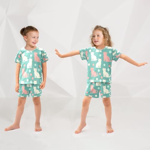 senya Color Cat on Green Dot Summer Pajamas Set Short Cotton Sleepwear 2 Piece 1