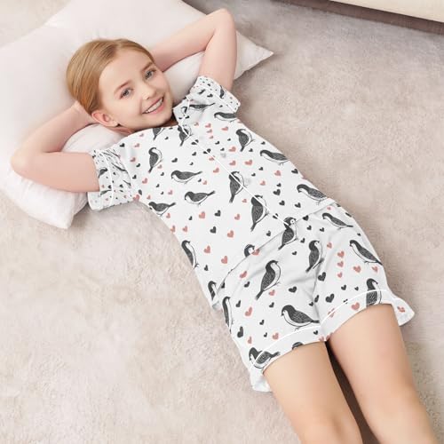 senya Birds with Hearts Satin Summer Pajama Sets Silk Short Sleeve Button Down Sleepwear 6