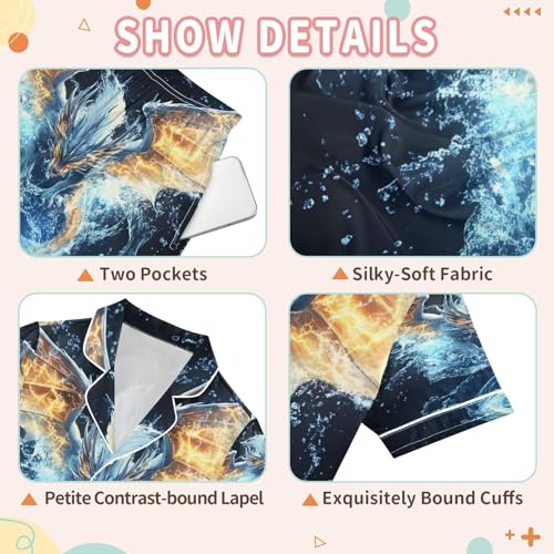 ALAZA Dragon Fantasy Blue Satin Pajamas Set Short Sleeve Button Down Sleepwear Summer Pjs 2 Piece 1