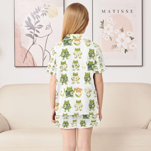 senya Flower Cute Frog Satin Summer Pajama Sets Silk Short Sleeve Button Down Sleepwear 1