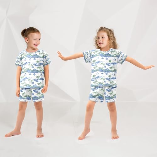 senya Palm Tree Sailboat Mountain Wave Summer Pajamas Set Short Cotton Sleepwear 2 Piece 6