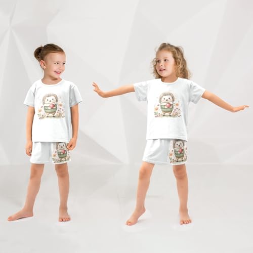 Hedgehog Flowers Beige Pajama Set Short Sleeve Summer Pajamas Sleepwear Nightwear Set Cotton 5Y 6