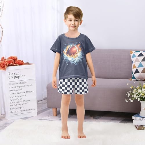 Checkerboard Plaid Football Dark Blue Pajama Set Short Sleeve Sleepwear Soft Pajamas Shorts Sets Cotton PJS 5Y 5
