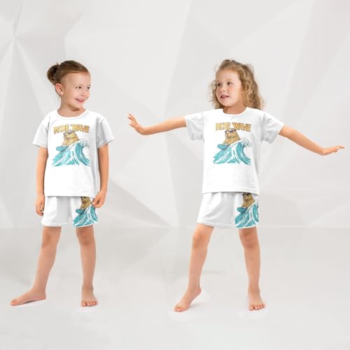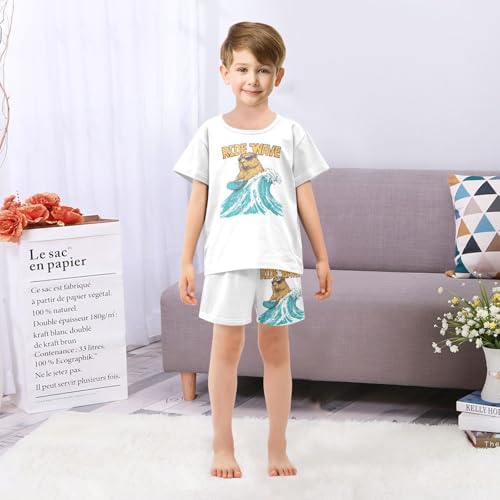 Surfing Beaver Ocean Turquoise Pajama Set Short Sleeve PJS 2 Piece Summer Pajamas Shorts Sets Cotton 5Y 4