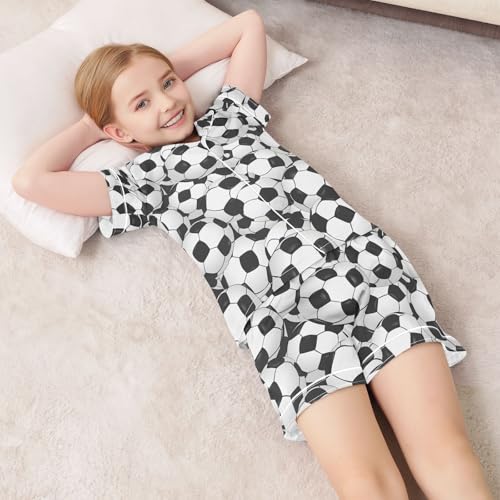 ALAZA Football Ball Soccer White Satin Pajamas Set Short Sleeve Button Down Sleepwear Summer Pjs 2 Piece 3