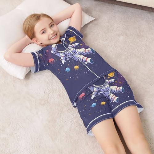 ALAZA Solar System Planet Hipster Astronaut Space Satin Pajamas Set Short Sleeve Button Down Sleepwear Summer Pjs 2 Piece 6