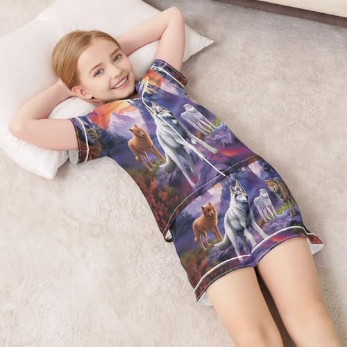 More information about ALAZA Wolf Mountain Castle Satin Pajamas Set Short Sleeve Button Down Sleepwear Summer Pjs 2 Piece