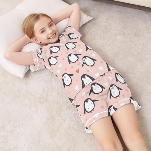 ALAZA Valentines Penguin Heart Love Satin Pajamas Set Short Sleeve Button Down Sleepwear Summer Pjs 2 Piece 1