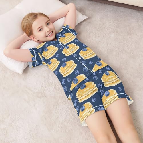 ALAZA Blueberry Cake Satin Pajamas Set Short Sleeve Button Down Sleepwear Summer Pjs 2 Piece 1