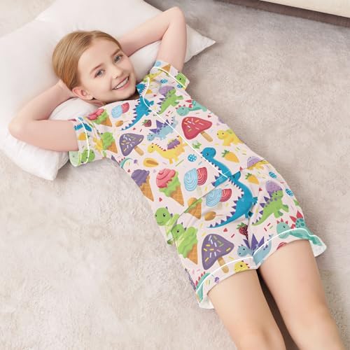 ALAZA Dinosaur Ice Cream Mushroom Satin Pajamas Set Short Sleeve Button Down Sleepwear Summer Pjs 2 Piece 6