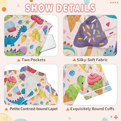 ALAZA Dinosaur Ice Cream Mushroom Satin Pajamas Set Short Sleeve Button Down Sleepwear Summer Pjs 2 Piece 3