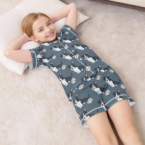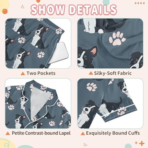 ALAZA Blue Dog Paw Print Puppy Satin Pajamas Set Short Sleeve Button Down Sleepwear Summer Pjs 2 Piece 7