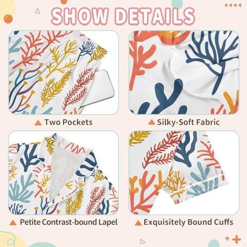 ALAZA Sea Coral Reef White Pajamas Satin Pajama Set Short Sleeve Button Down Sleepwear 5