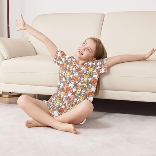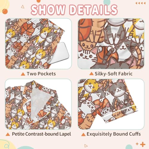 ALAZA Cartoon Cat Basketball Satin Pajamas Set Short Sleeve Button Down Sleepwear Summer Pjs 2 Piece 6