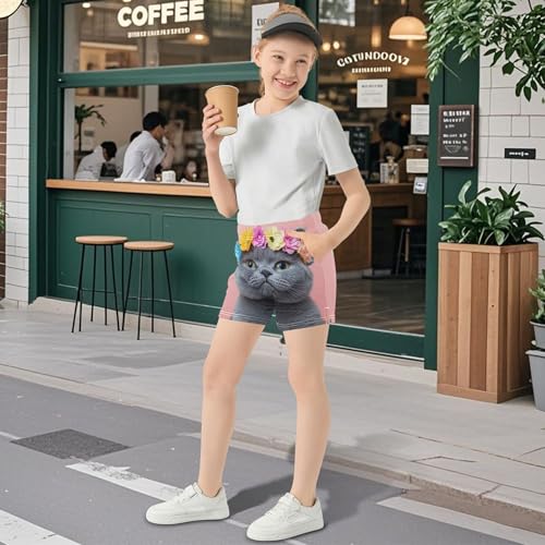 Girls Athletic Shorts Cute Gray Cat Floral Crown Print Colorful Kids Summer Pajama Sleep Gymnastics Shorts, X-Small 4