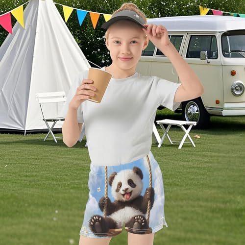 Playful Panda Sky Blue Girls Lounge Shorts Athletic Youth Pajama Active Summer Clothes Cute Animal Print, X-Small 6