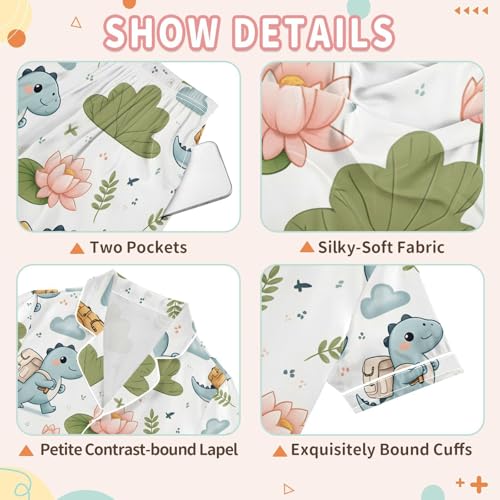 More information about ALAZA Dinosaur Water Lily Cloud Pajamas Satin Pajama Set Short Sleeve Button Down Sleepwear