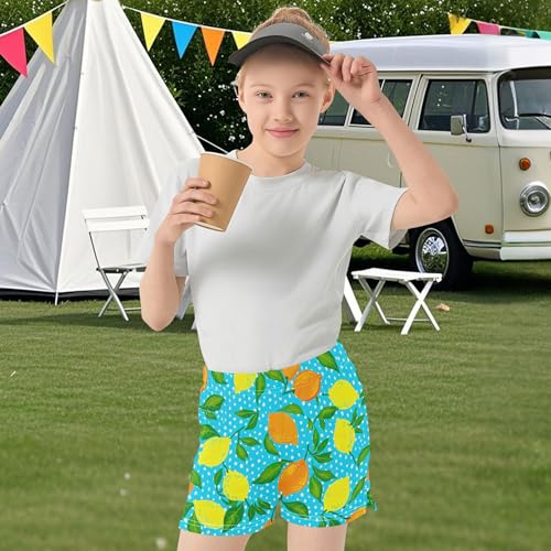 Girls Shorts Cute Lemon Print Athletic Shorts Casual Summer Activewear Kids Teens Pajama Sleepwear, X-Small 6