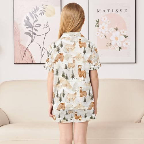 senya Alpaca and Tree 1 Satin Summer Pajama Sets Silk Short Sleeve Button Down Sleepwear 6