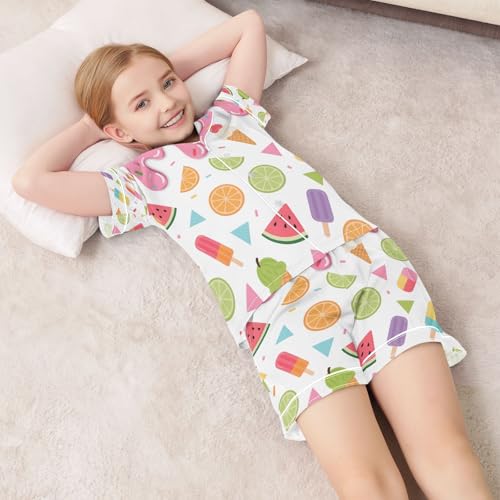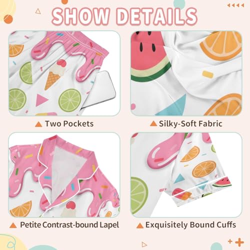 ALAZA Ice Cream Watermelon Lemon Satin Pajamas Set Short Sleeve Button Down Sleepwear Summer Pjs 2 Piece 4