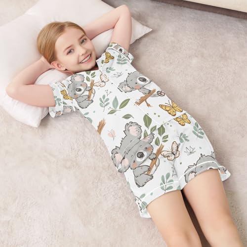 ALAZA Koala Butterfly Leaf Butterfly Pajamas Satin Pajama Set Short Sleeve Button Down Sleepwear 2
