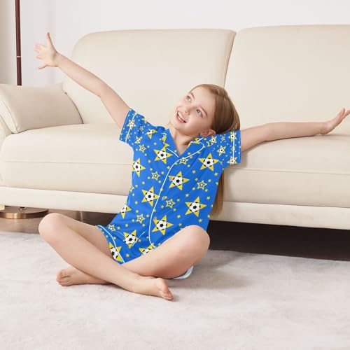 senya Soccer Star Blue Satin Summer Pajama Sets Silk Short Sleeve Button Down Sleepwear 1