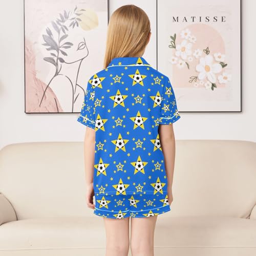 senya Soccer Star Blue Satin Summer Pajama Sets Silk Short Sleeve Button Down Sleepwear 2