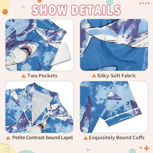 ALAZA Shark Blue Watercolor Pajamas Satin Pajama Set Short Sleeve Button Down Sleepwear 7