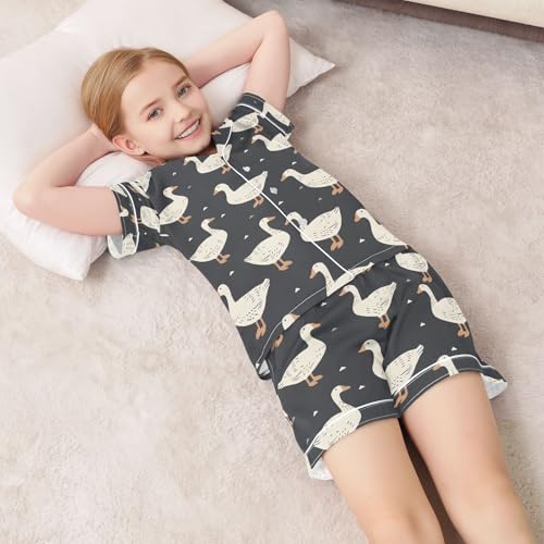 HOT ! ALAZA Duck Goose Vintage Pajamas Satin Pajama Set Short Sleeve Button Down Sleepwear