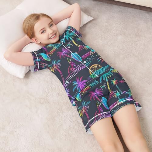 senya Palm Trees Surfboards Satin Summer Pajama Sets Silk Short Sleeve Button Down Sleepwear 1