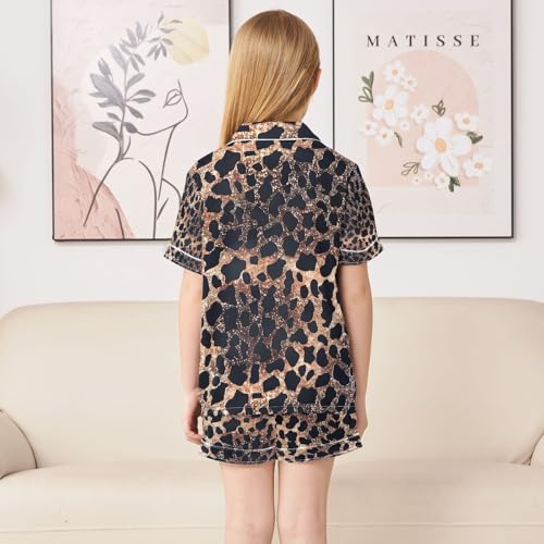 senya Glitter Leopard Design Satin Summer Pajama Sets Silk Short Sleeve Button Down Sleepwear 1