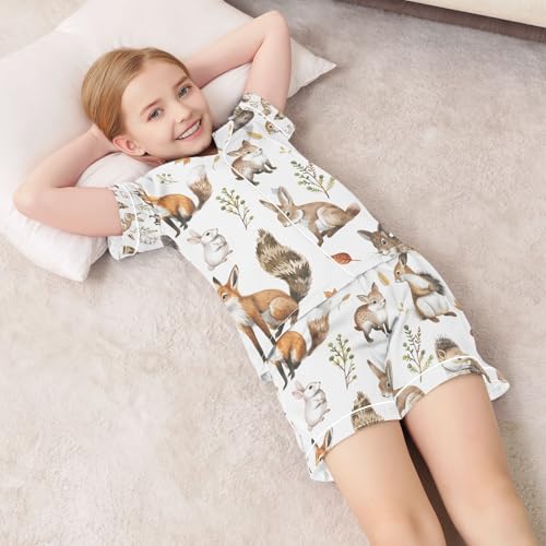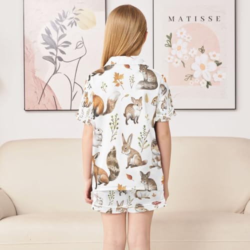 senya Cute Forest Animals A Satin Summer Pajama Sets Silk Short Sleeve Button Down Sleepwear 2